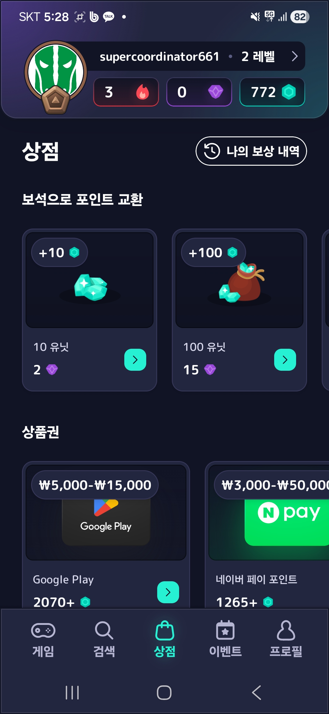 매우 직관적입니다. 어떤 게임을 해야 포인트를 많이 주는지,